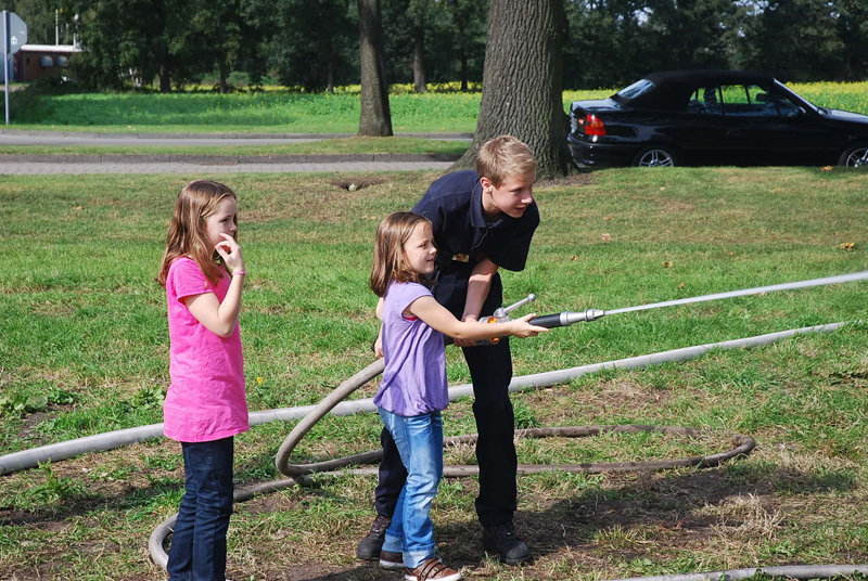 Die Jugendfeuerwehr hatte für die jüngsten Besucher Wasserspiele im Programm: an zwei C-Rohren konnten Bälle jongliert oder Fallklappen "gelöscht" werden.