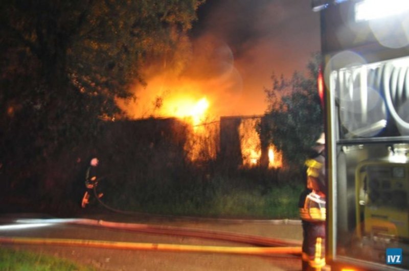 Feuer: Wohnhausbrand, Arbeiterunterkünfte brennen