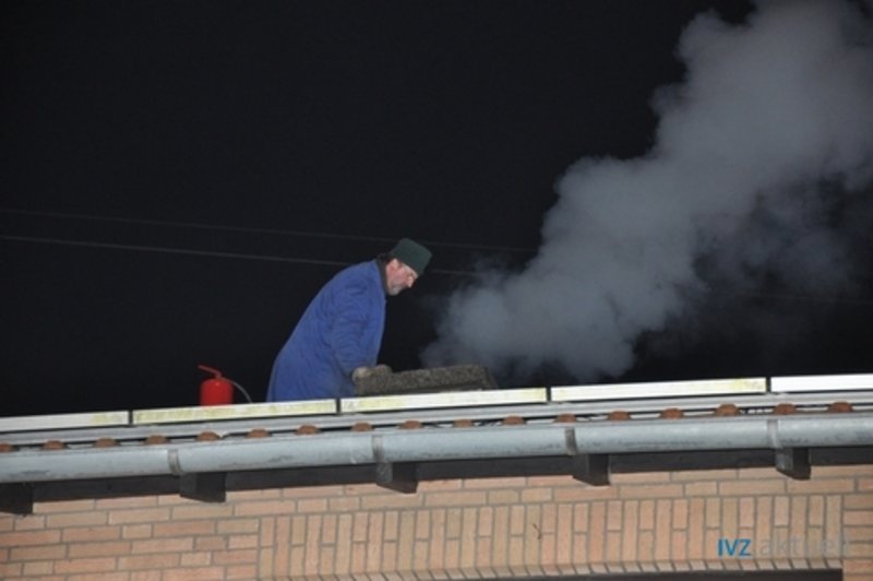 Der Schornstein eines Mehrfamilienhauses war in Brand geraten. Der Kamin wurde durch den zuständigen Schornsteinfeger gekehrt und die Glut durch die Feuerwehr aus dem Keller verbracht.