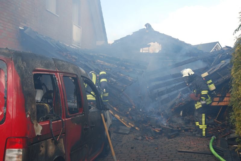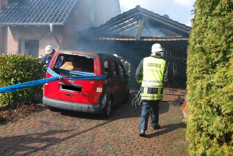 Der unter dem Carport abgestellte PKW war nicht mehr zu retten.