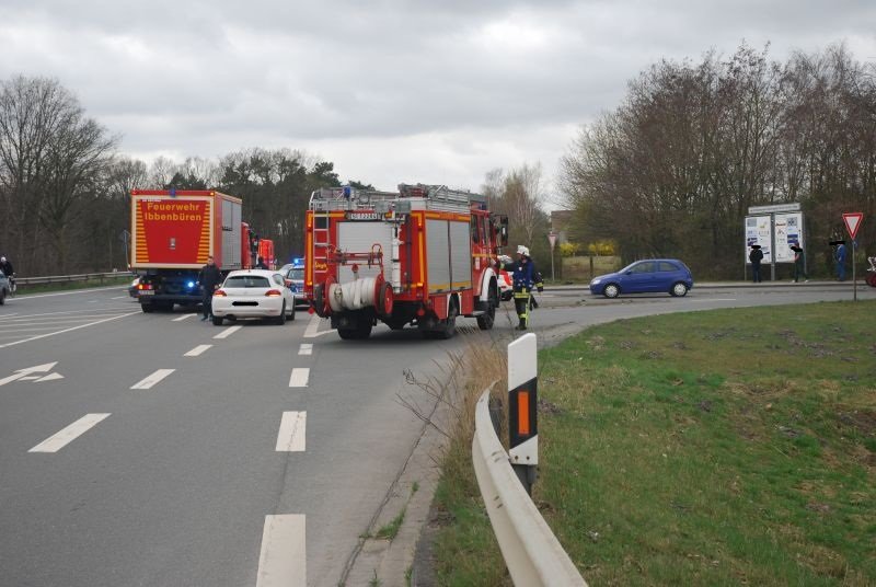 -ms- Zu einem Verkehrsunfall mit einer eingeklemmten Person wurde der Löschzug 1 der Feuerwehr Ibbenbüren, der Dienstbetrieb, die Feuerwehr Hörstel und der Rettungsdienst alarmiert.