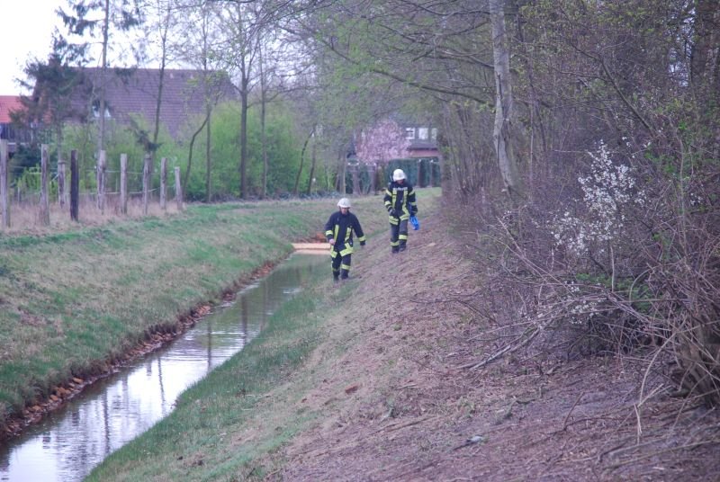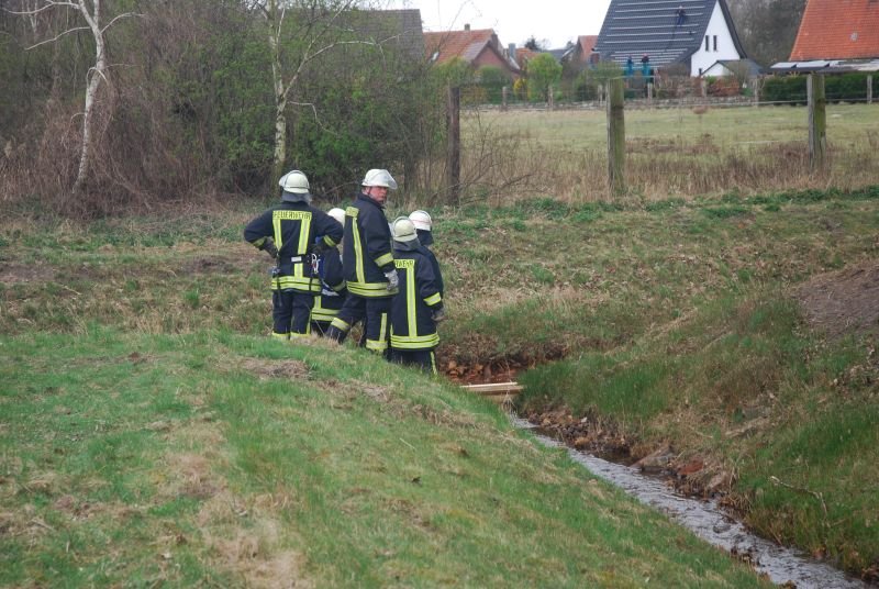 Um eine Ausbreitung von Betriebsstoffen in dem Bach zu vermeiden, wurden zwei Ölsperren im Verlauf des Baches errichtet und ein schwimmfähighes Ölbindemittel aufgebracht.