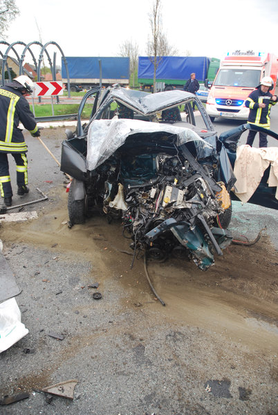 Der Fahrer, der alleiniger Insasse war, musste mit hydraulischem Rettungsgerät befreit werden und wurde dem Rettungsdienst übergeben. Von der Feuerwehr wurden noch ausgelaufene Betriebsstoffe gebunden.