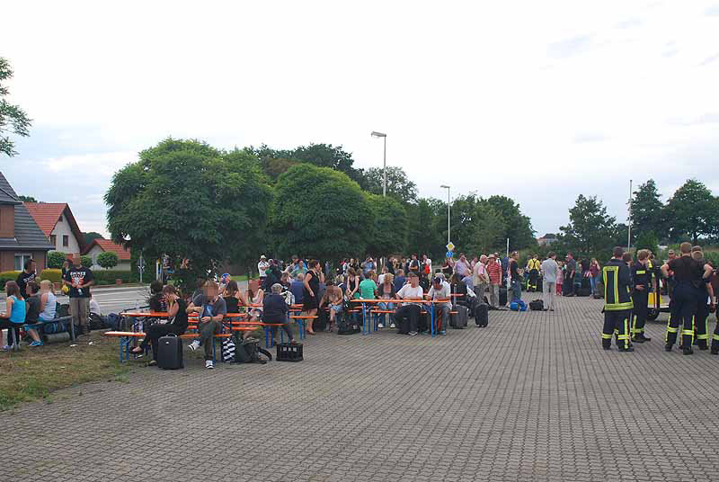 Wetterbedingt mussten keine Zelte aufgebaut werden - weder als Sonnen- noch als Regenschutz. Zur nahen Feuer - u. Rettungswache Ibbenbüren wurde mit MTF ein Pendelverkehr zur Toilettenbenutzung gefahren.