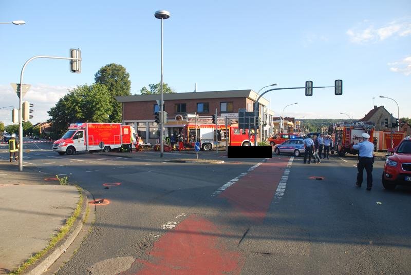 Ein Radfahrer wurde tödlich verletzt. Der Fahrer des PKW war in seinem Fahrzeug eingeklemmt und wurde durch die Rettungskräfte mit schwerem hydraulischem Rettungsgerät aus seinem Fahrzeug befreit und dem Rettungsdienst übergeben.