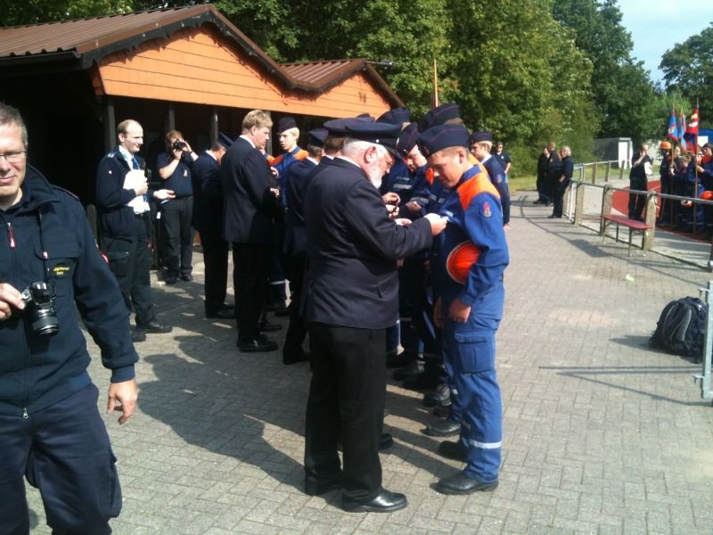 Nach der erfolgreichen Abnahme in allen Disziplinen wurde den Jugendfeuerwehrmitgliedern durch den Abnahmeberechtigen des Landes NRW, den Leitern der Feuerwehr Horstmar, dem Bürgermeister der Stadt Horstmar, Vertretern des Verbandes der Feuerwehren im Kreis Steinfurt und dem Landrat des Kreises Steinfurt das begehrte Abzeichen, die Leistungsspange der deutschen Jugendfeuerwehr verliehen.