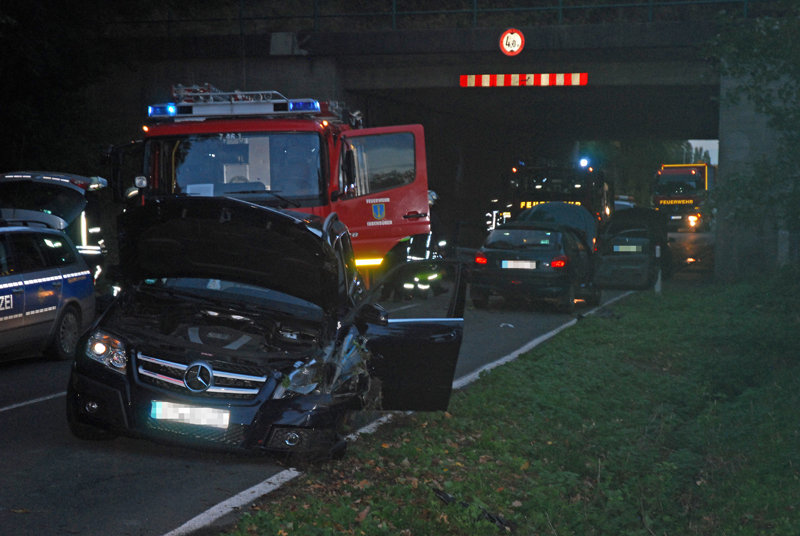 Dort war nach einer Kollision mit drei beteiligten PKW eine Person im Fahrzeug eingeschlossen. Der Person wurde aus dem Fahrzeug geholfen und die Batterien der verunfallten Fahrzeuge wurden abgeklemmt. Es wurde auf auslaufende Betriebsstoffe kontrolliert. Kein weiterer Einsatz für die Feuerwehr.