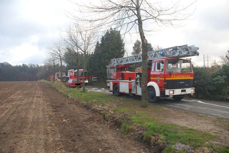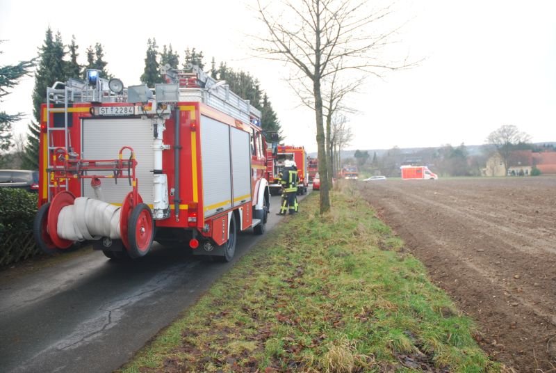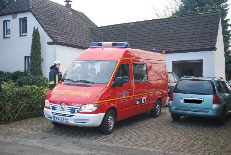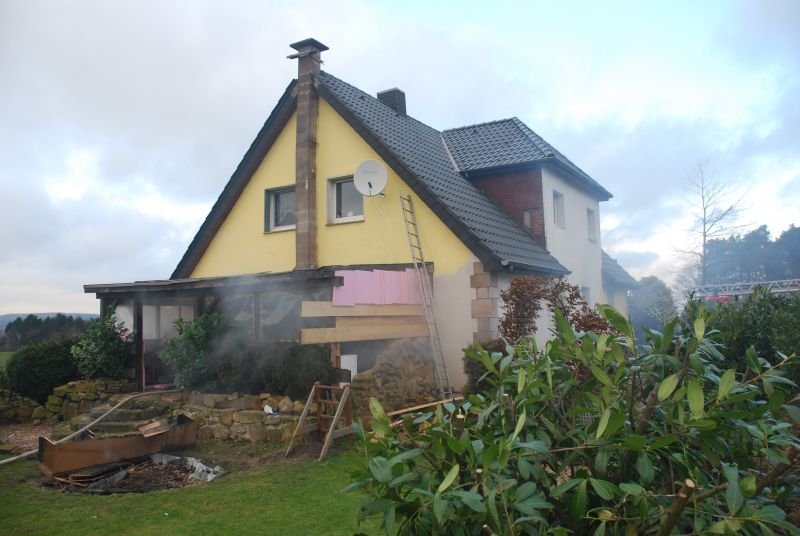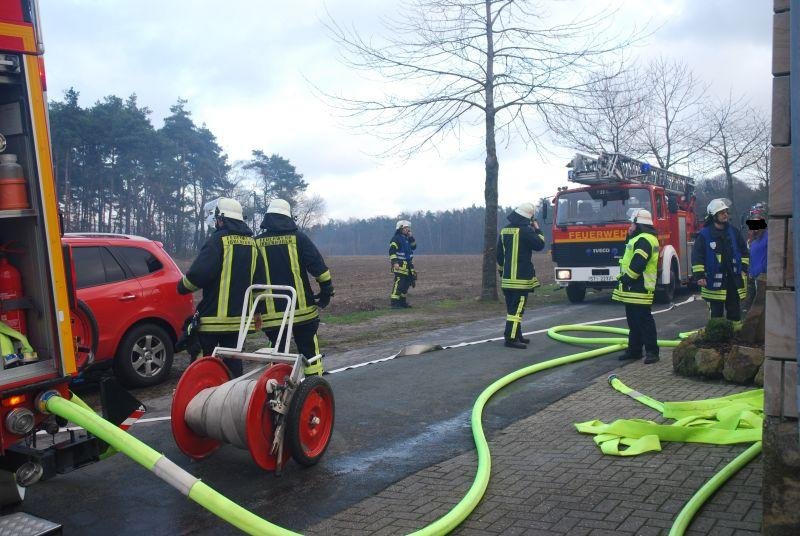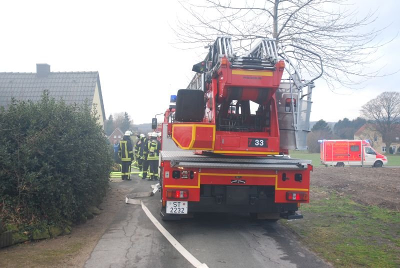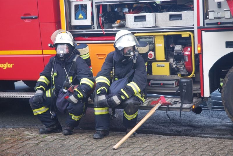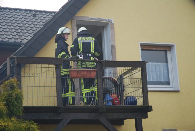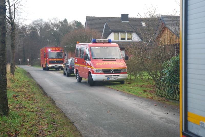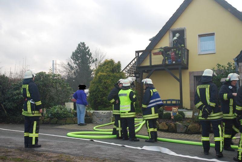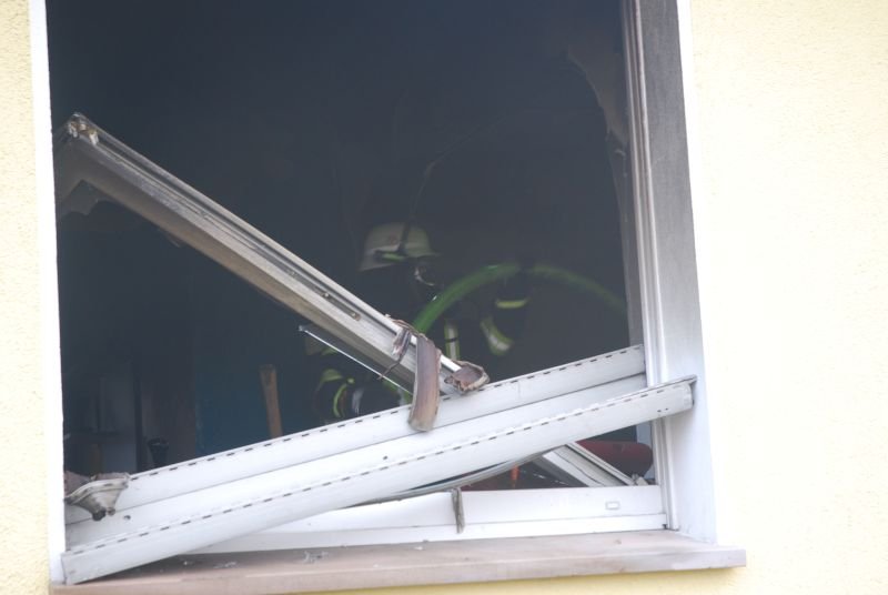 Im Erdgeschoss eines Zweifamilienhauses war aus ungeklärter Ursache ein ausgedehnter Zimmerbrand entstanden. Zwei Angriffstrupps unter umluftunabhängigem Atemschutz drangen einmal durch den Haupteingangsbereich und zweitens durch den Hintereingang in das Erdschoss zum Brandherd vor. Jeweils mit einem C-Rohr konnte der Brand schnell unter Kontrolle gebracht werden.