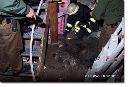 Die ersteintreffende Besatzung eines Streifenwagens der Polizeiinspektion Ibbenbüren hatte das Feuer bereits mit einem Feuerlöscher bekämpft, als das LF24 und der ELW eintrafen. Die Flammen hatten nach Zeugenaussagen zuvor meterhoch geschlagen.