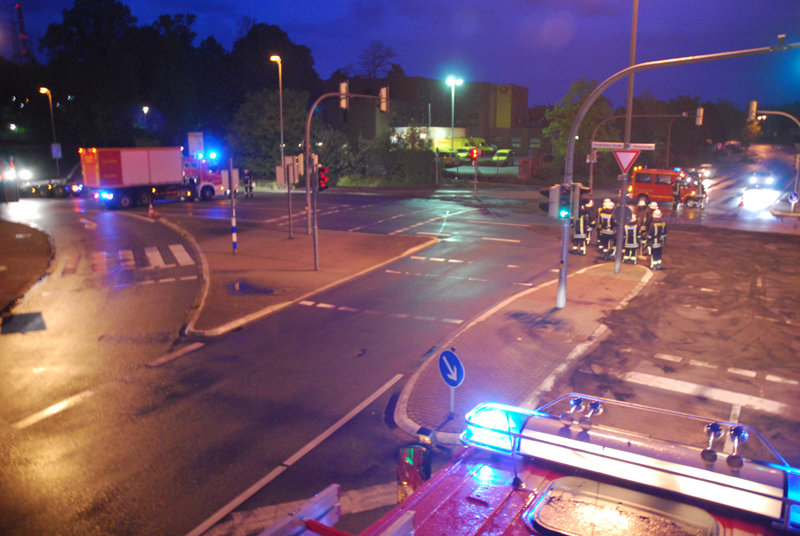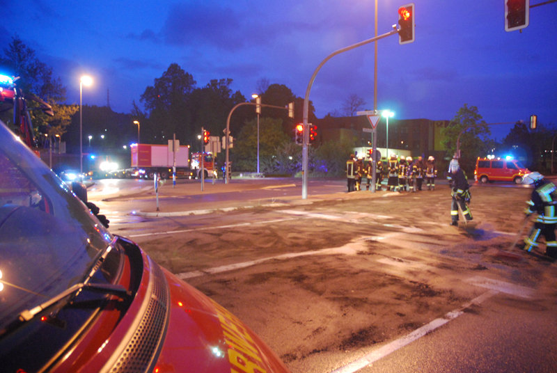 Im Bereich Heldermannstraße und Osnabrücker Straße bis Mittelstraße hatte ein Pkw Motoröl verloren, dass durch Regen und Überfahren großflächig verteilt worden war.