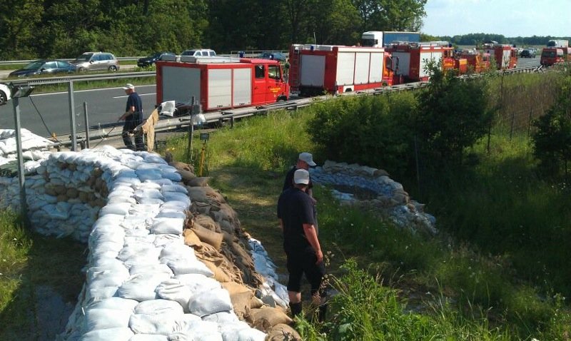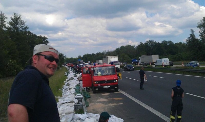 Um 11:00 Uhr wurde die Einheit der Feuerwehr Ibbenbüren auf die BAB9, ca. einen Kilometer vor der Anschlussstelle Dessau-Ost verlegt. Die wichtige Nord-Süd Verbindung über die A9 drohte durch den Anstieg des Hochwassers überschwemmt zu werden. Die Feuerwehr Ibbenbüren wurde mit der Deicherhaltung mittels Sandsäcken eingesetzt. Die bereits gefüllten Sandsäcke wurden dort von der Bundeswehr, dem THW und diversen Transportunternehmen angeliefert. Gemeinsam mit weiteren Feuerwehreinheiten wurde dort Hand in Hand gearbeitet.