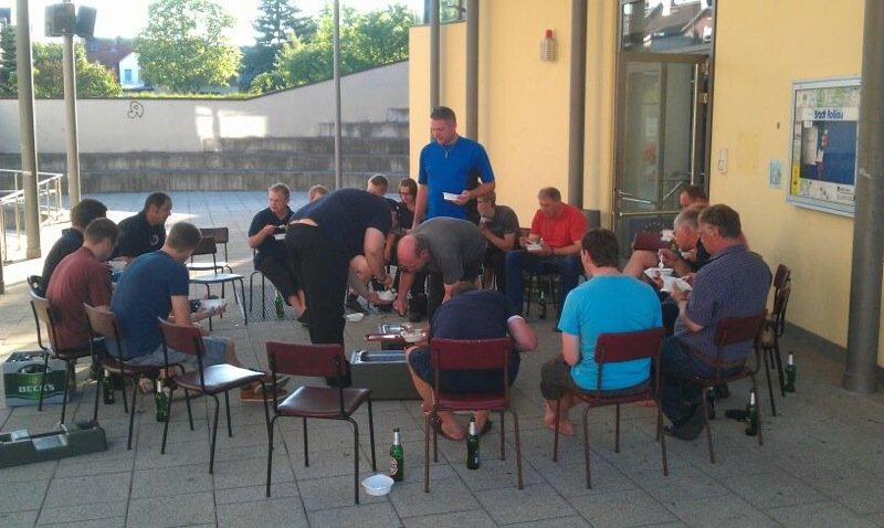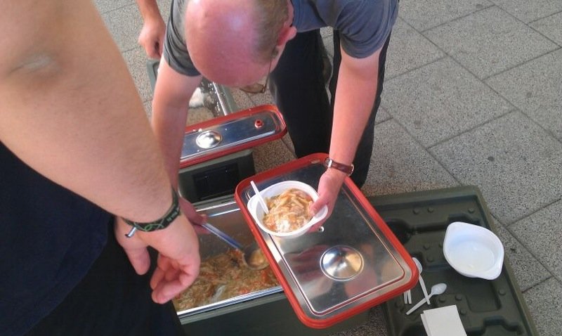 Gegen Abend kehrten die Einsatzkräfte der Feuerwehr Ibbenbüren wieder zu ihrer Notunterkunft zurück und wurden mit einem Abendessen verpflegt.