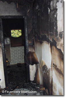 Mit zwei Trupps unter PA wurde das Feuer im Innenangriff schnell und wirkungsvoll bekämpft, so dass nach kurzer Zeit "Feuer unter Kontrolle" und wenig später "Feuer aus - Nachlöscharbeiten" gemeldet werden konnte. Dennoch haben Feuer und vor allem Brandrauch und Ruß dem gesamten Haus so weit zugesetzt, dass zurzeit kein Zimmer mehr bewohnbar ist.