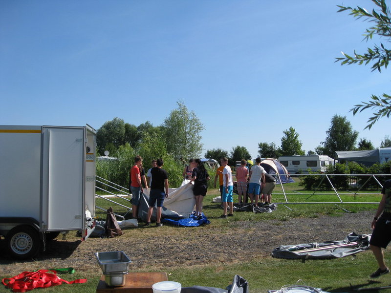Nach einer kurzen Zwischenpause an der Gedenktstätte/Raststätte Marienborn erreichten wir trotz der großen Wärme (nur ein Bulli hat eine Klimaanlage) unser Ziel und begannen, die kleine Zeltstadt aufzubauen.