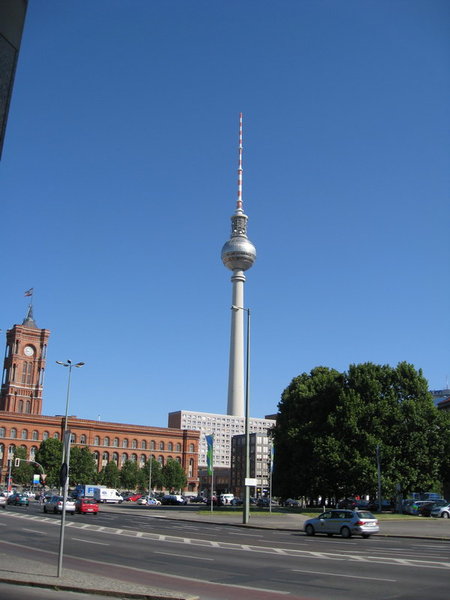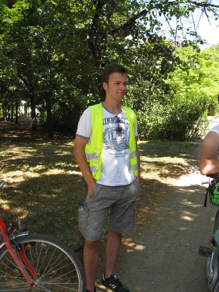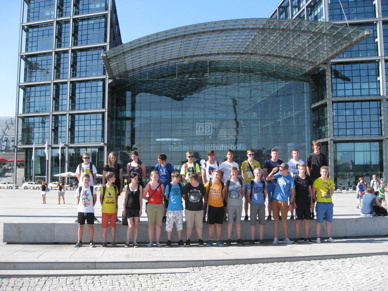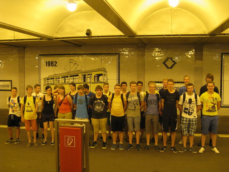 Nach kurzem Appell und morgendlichem Antreten machten wir uns gegen 0830 mit den Bullis auf zur 2 km entfernten S-Bahn-Station. Nach kurzer Fahrt mit S- und U-Bahn erreichten wir die Station von „Berlin per Rad“ an der Nikolaikirche. Als sich jeder einen Drahtesel geschnappt und einen Helm auf dem Kopf hatte, führte uns der Guide Christian am Rande der StVO quer durch Berlin.