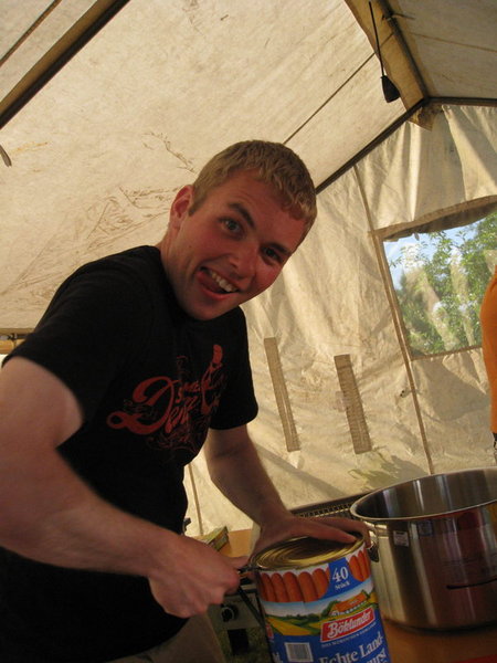 Bei Ankunft im Camp traten der Küchendienst und der Chefkoch direkt in Aktion und gemeinsam zauberten sie herzhafte Nudel mit Wurstgulasch.