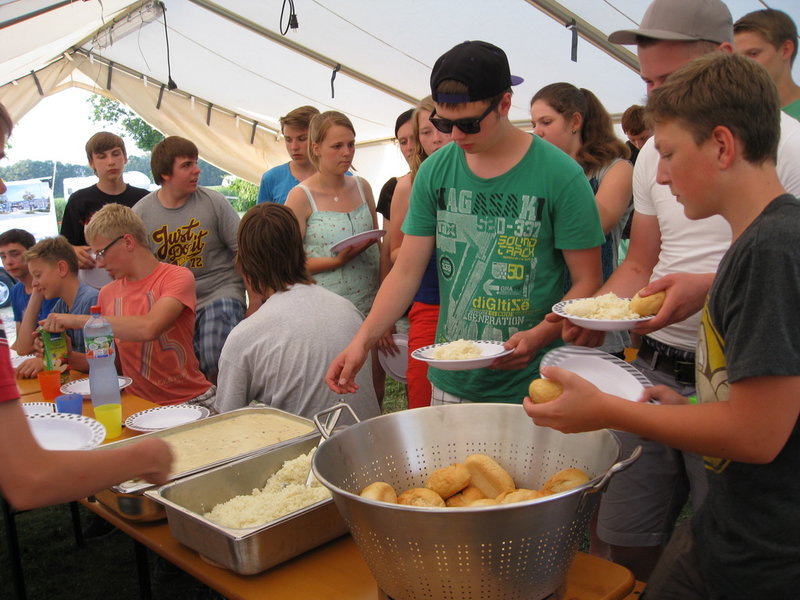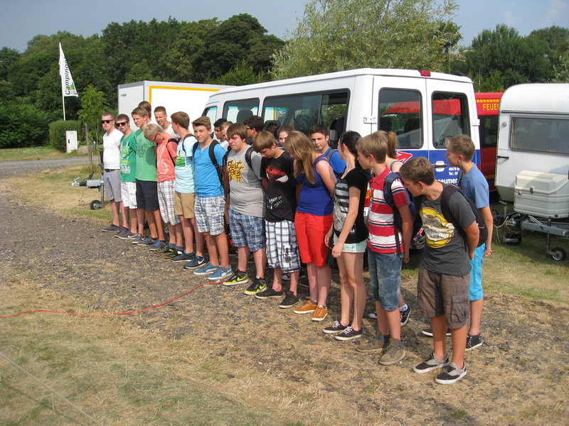 Auch am fünften Tag des Lagers trotzte die Jugendfeuerwehr der bereits am frühen Morgen drückenden Hitze und trat um 0830 zum Frühstück an.