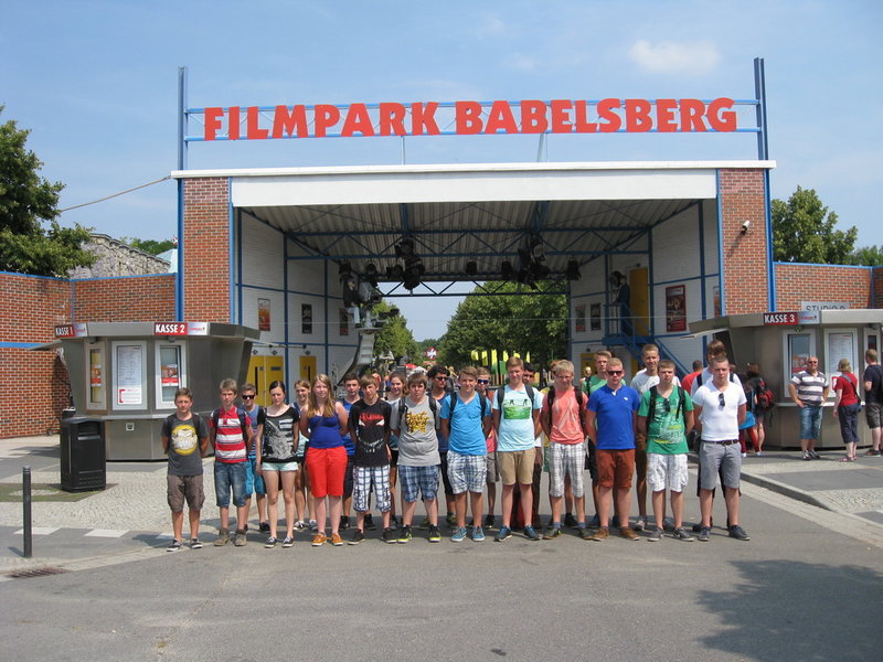 Dort angekommen ging es per Bus zu den Babelsberger Filmstudios. In kleinen Gruppen erkundeten wir die Kulissen der Filmstudios und einige nachgebaute Filmobjekte wie z.B. den Wohnwagen von Peter Lustig oder den originale „Gute Zeiten – Schlechte Zeiten“ Außendrehort.