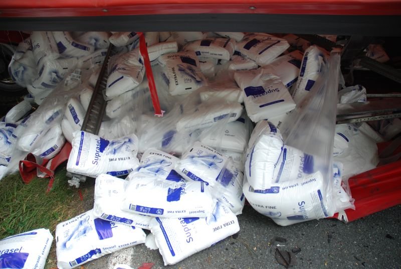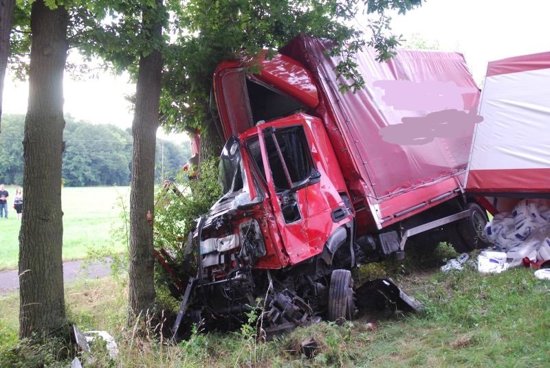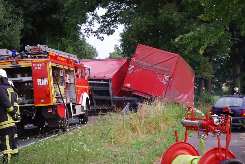 Der LKW war gegen einen Baum geprallt und quer zur Straße zum stehen gekommen. Die Ladung stellte für den Verlauf des Einsatzes keine Gefahr dar.