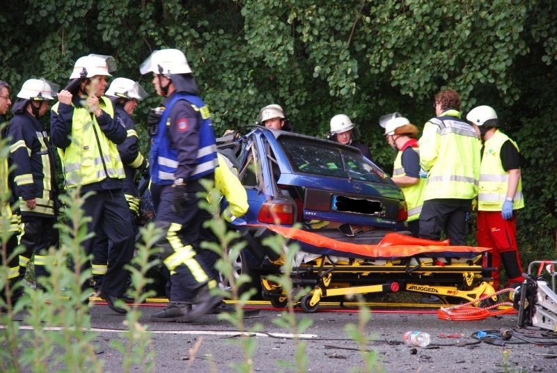 Der verstorbene Fahrer des Pkw wurde ebenfalls mit technischem Gerät aus seinem Fahrzeug geborgen.