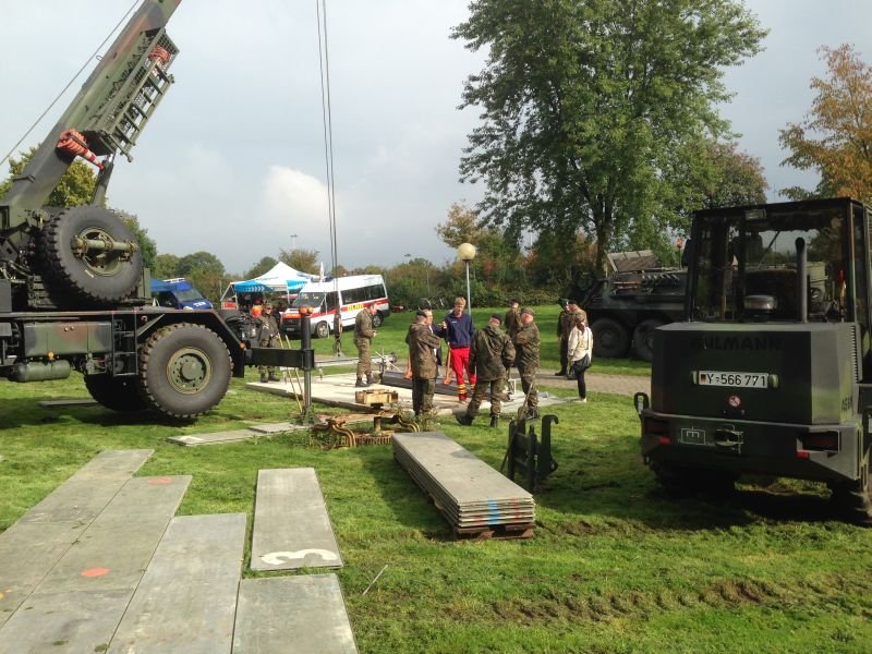 Die Bundeswehr, das Technische Hilfswerk, das Deutsche Rote Kreuz sowie die Deutsche Lebens-Rettungs-Gesellschaft stellten Fahrzeuge und Technik aus.