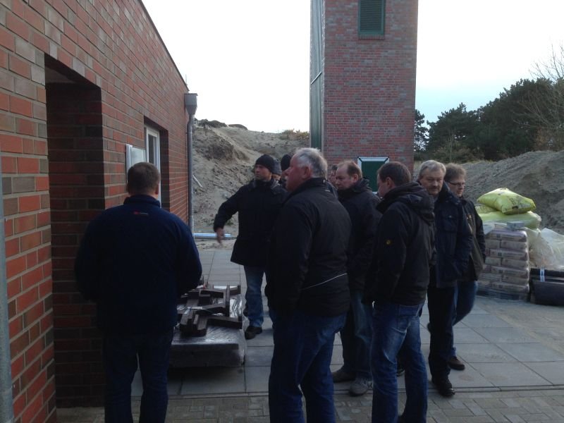 Der Leiter der Feuerwehr Wangerooge, Bernd Kubiak, bot allen Kameraden noch eine Führung durch das schon fast fertiggestellte neue Feuerwehrhaus der Gemeinde Wangerooge an.