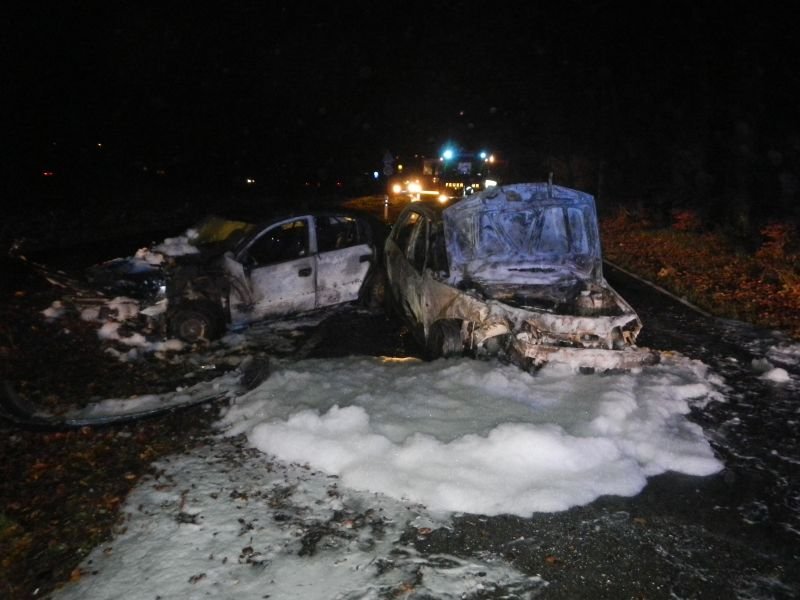 Vor Ort stellte sich die Lage wie folgt dar: Zwei PKW hatten nach einem Verkehrsunfall zu brennen begonnen. Vier Fahrzeuginsassen wurden verletzt, hatten aber beim Eintreffen der Feuerwehr die Fahrzeuge bereits verlassen.