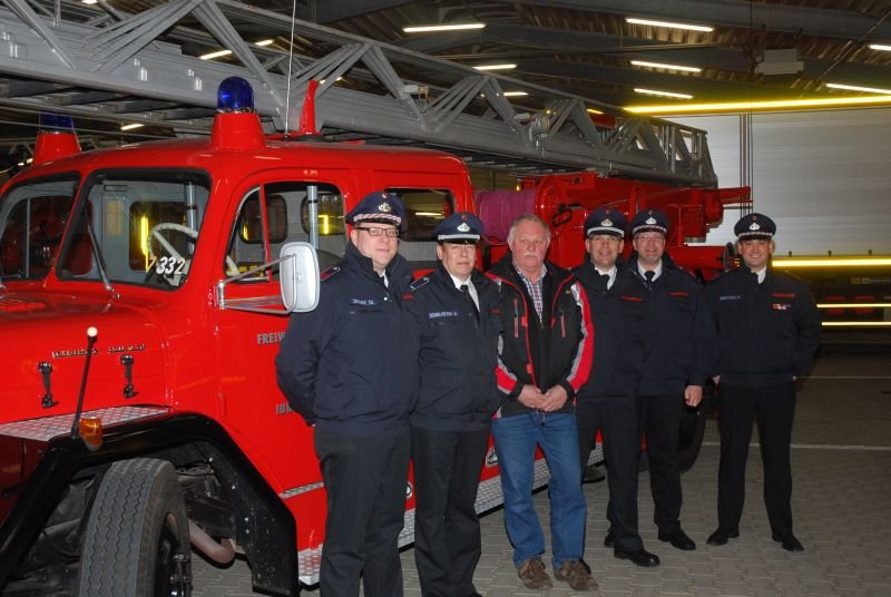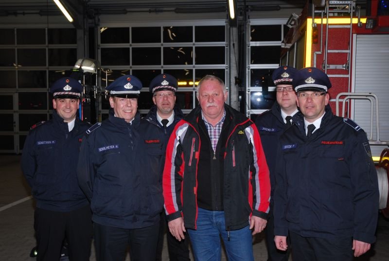 Zu seinem letzten Dienst wurde er von Zugführer Peter Denecke und Stellvertreter Harald Scholmeyer, sowie den gewählten Gruppenführern aus dem Löschzug Stadtmitte II, Christian Jaschke, Ulrich Stallbörger und Marc Schüttken, mit der alten Drehleiter und dem ELW überraschenderweise zum Dienst von zu Hause abgeholt.