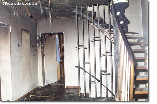 Am Tag vor Heiligabend wurde die Feuerwehr Ibbenbüren gegen 21 Uhr zu einem Zimmer-brand alarmiert. In dem komplett verrauchten Haus an der Alstedder Grenze wurde noch eine Person vermisst.Zuvor war vermutlich durch eine Kerze im Flur des Erdgeschosses ein Holzregal in Brand geraten. Schnell hatte das Feuer den ganzen Bereich erfasst und das komplette Gebäude massiv verraucht. Die Hauseigentümerin hatte noch versucht die Flammen zu löschen, zog sich dabei aber Brandverletzungen zu. Die Tochter der 46-jährigen Frau sollte sich noch im Haus befinden und galt als vermisst.