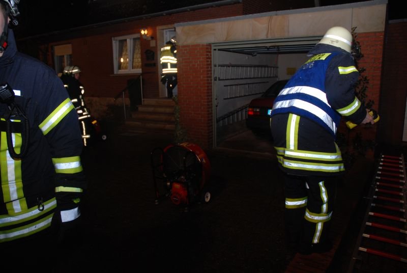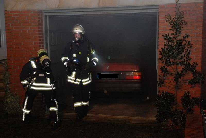 Bei Eintreffen der Kräfte wurde eine starke Verrauchung eines im hinteren Bereich der Garage liegenden Raumes festgestellt. Ebenfalls war das Wohnhaus durch den Brandrauch in Mitleidenschaft gezogen worden.