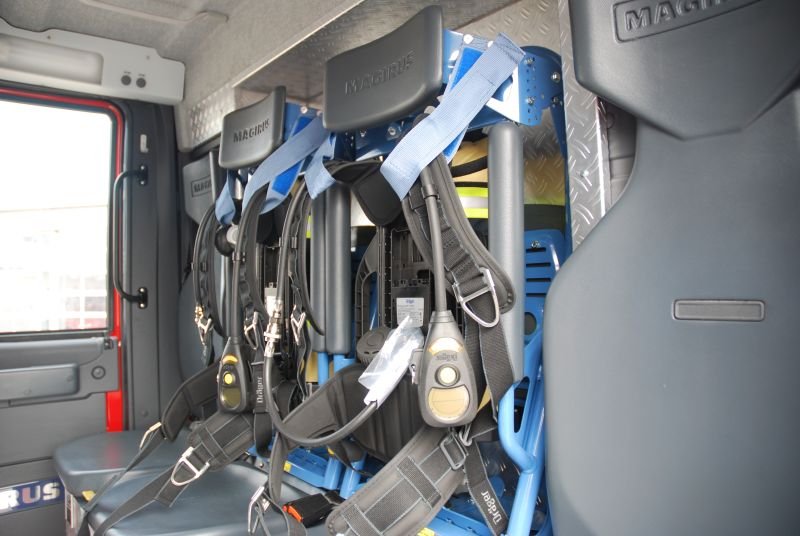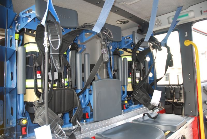 Von diesem Fahrzeug aus wird zukünftig auch der Sicherheitstrupp gestellt, da es im Mannschaftsraum zwei "Einflaschen-Atemschutzgeräte" in Fahrtrichtung und zwei "Zweiflaschen-Atemschutzgeräte" gegen die Fahrtrichtung eingebaut hat.