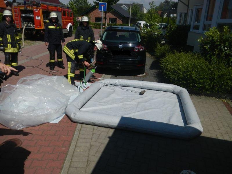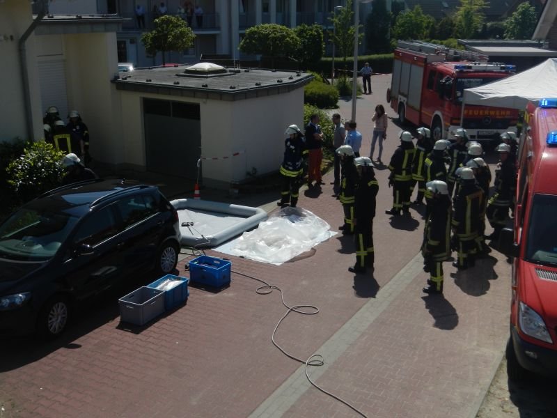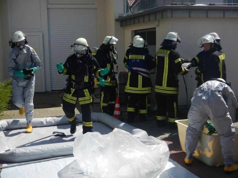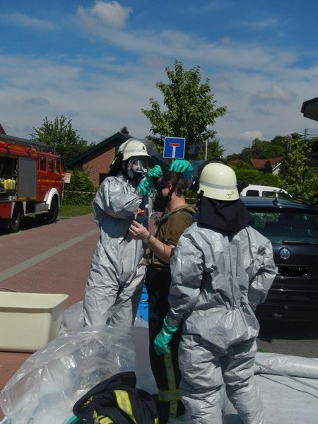 Es wurde ein Dekonplatz für die im unmittelbaren Gefahrenbereich eingesetzten Kräfte eingerichtet, so dass die mit dem Stoff in Berührung gekommenen Kleidungs- und Ausrüstungsgegenstände direkt einer fachgerechten Reinigung zugeführt werden konnten.