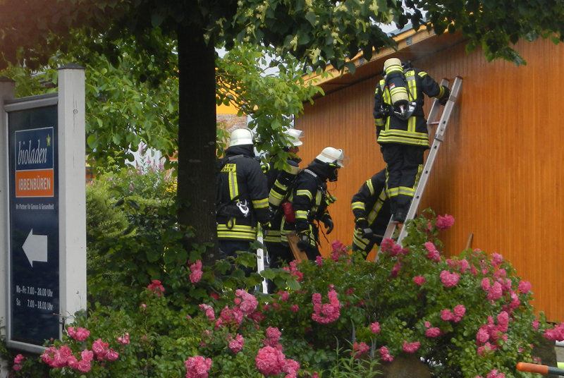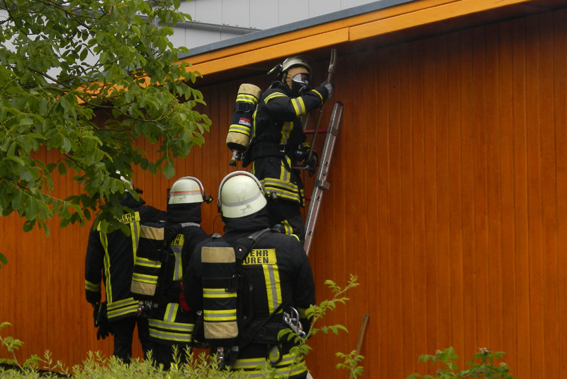 Die ersten Kräfte fanden eine Rauchentwicklung an der Außenfassade eines in Holzbauweise errichteten Gebäudeteils vor. Der Zug Stadtmitte 2 wurde vorsorglich nachalamiert.
