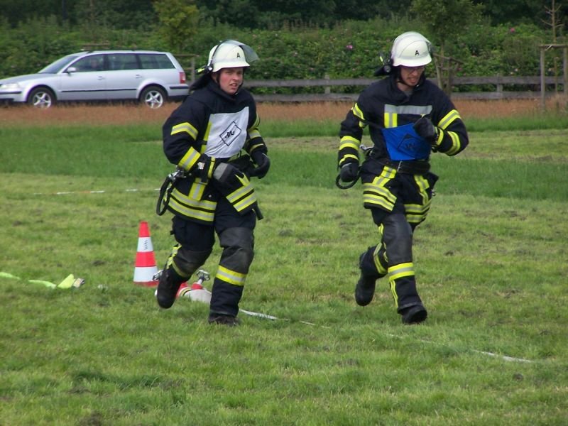 Erstmalig mussten die Kameradinnen und Kameraden in diesem Jahr auch einen Erste-Hilfe-Teil absolvieren. Bei einer vermeintlich bewusstlosen Person musste die stabile Seitenlange vollständig und in richtiger Reihenfolge angewendet werden. Der Erste-Hilfe-Teil ersetzte dieses Jahr die Knoten und Stiche.
