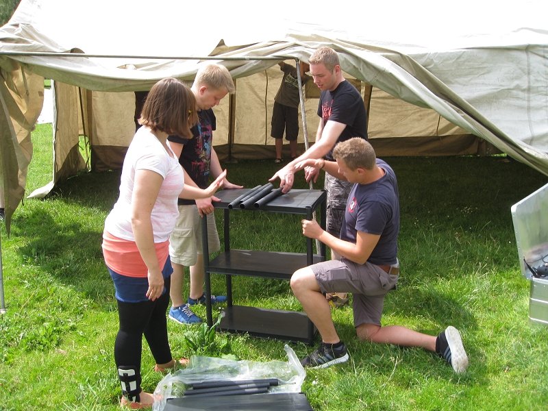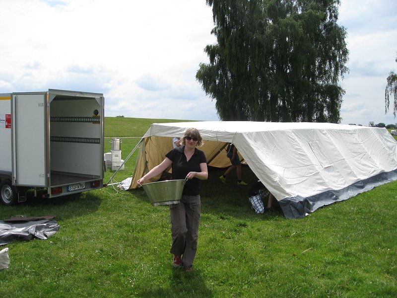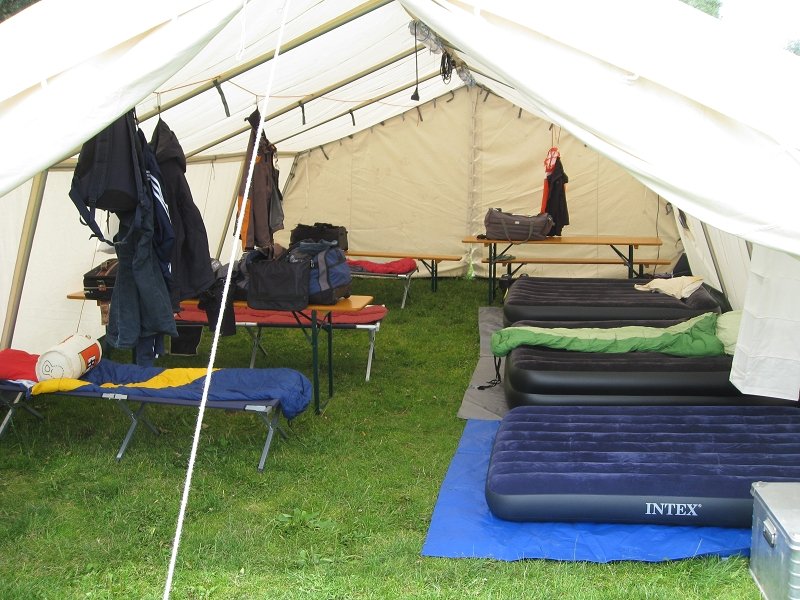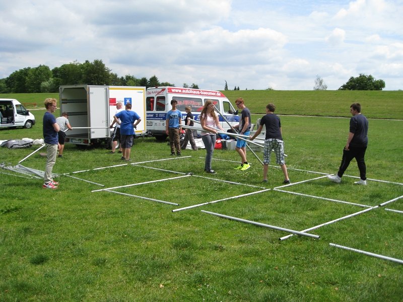 Nach kurzer Orientierungsphase bauten die Jungs und Mädchen unsere kleine Zeltstadt mit insgesamt fünf Zelten, insbesondere eigenem Küchenzelt auf. Im Anschluss wurde noch ausgiebig der Campingplatz erkundet.