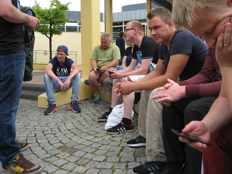 Nachdem der Küchen- und Ordnungsdienst seine Aufgaben erledigt hatte, machte sich der Tross auf in Richtung Public Viewing. Einmal über den Deich, erreichten wir die Campingplatzhalle, in der man mit ca. 50 anderen Campern das Spiel verfolgte. Das Endergebniss stand bei Redaktionsschluss noch nicht fest.