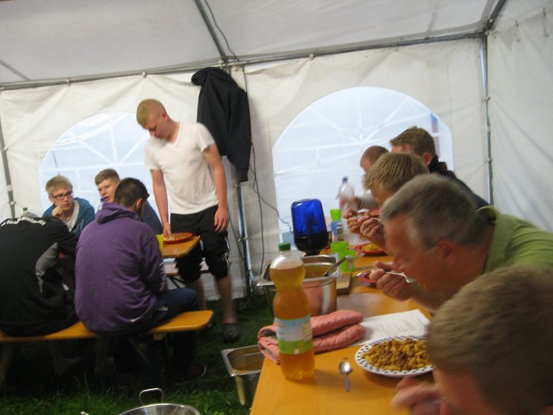 -olb- Der zweite Tag des Jugendfeuerwehrlagers begann wie erwartet mit Regen, viel Regen! Trotzdem bereitete der Küchen- und Ordnungsdienst zu 9 Uhr das Frühstück vor. Brötchen mit allerei Aufschnitt und Aufstricht sowie eine große Getränkevielfalt wurde geboten.