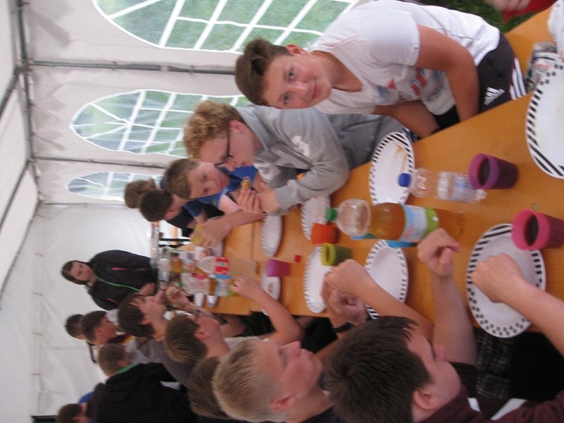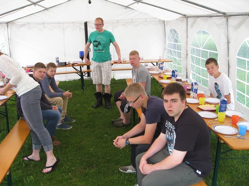 -olb- Am Morgen des dritten Tages hatte sich der Regen etwas verzogen und die Wiese blieb vorerst das Einzige, auf dem sich das Wasser staute. Somit konnte der Küchendienst reibungslos das Frühstück zu neun Uhr zubereiten und man durfte wieder allerlei Köstlichkeiten genießen.