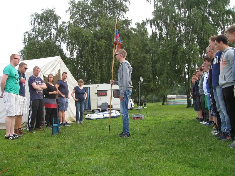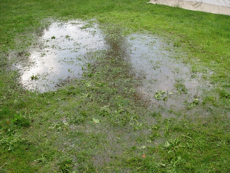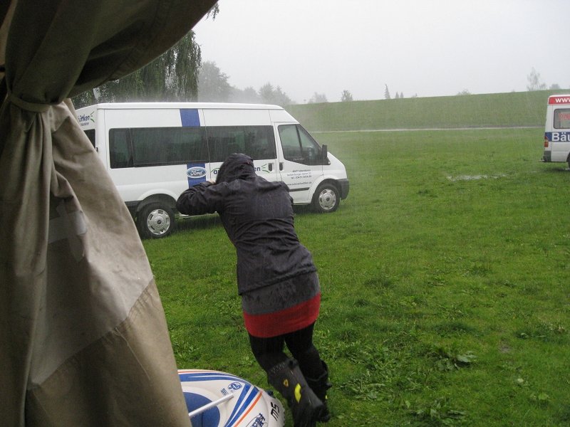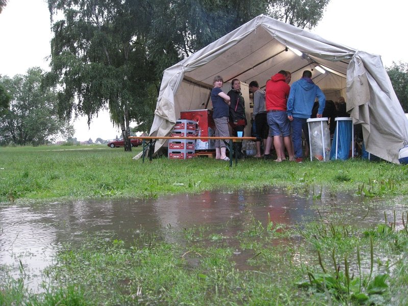 Die kräftigen Regenschauer hatten zufolge, das sich im Ausbilderzelt ein See von 15cm Tiefe gebildet hat. Dieses wurde dann bei strömendem Regen durch die Jungs und Mädchen an eine andere Stelle versetzt.