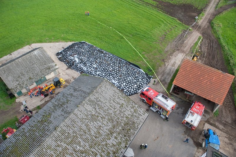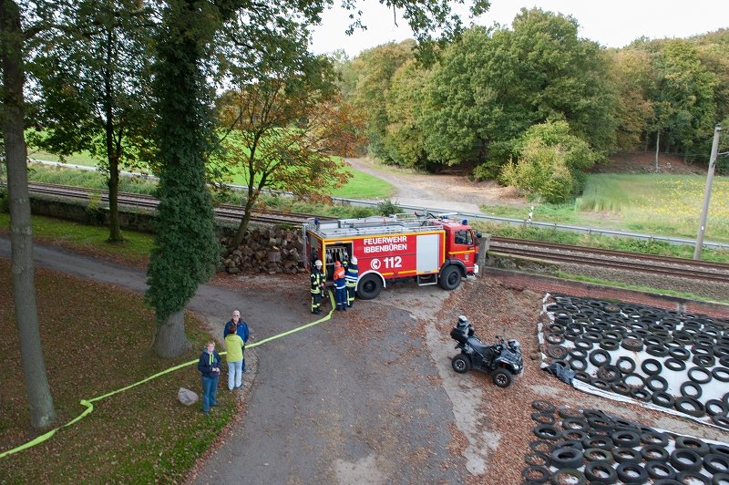 Durch Funkenflug haben sich Teile eines Reifenstapels entzündet. Durch einen Löschangriff mit 3 C-Rohren wurde dieser allerdings schnell gelöscht.