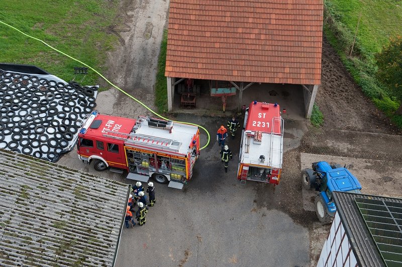 Durch die starke Rauchentwicklung in der Scheune musste eine Person, welche sich auf dem Dachboden befand, über die Steckleiter gerettet werden. Eine weitere bewusstlose Person wurde aus dem Keller der Nachbarscheune gerettet und betreut.
