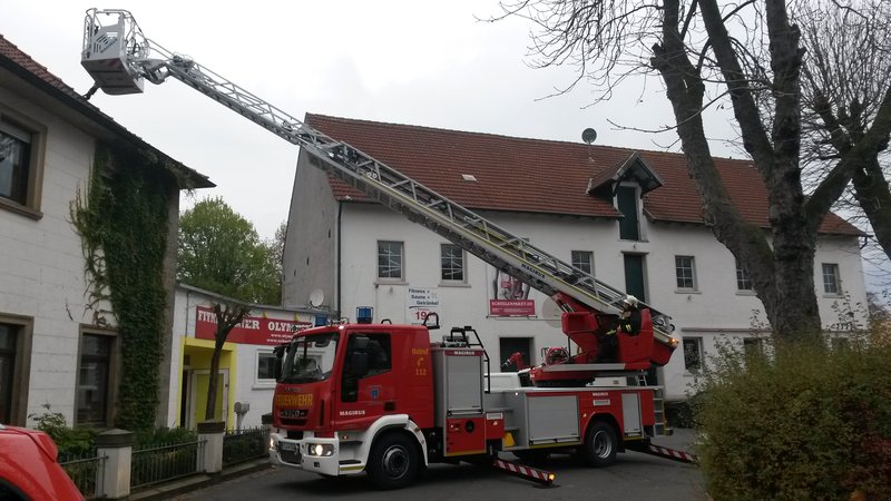 Eine Katze, die auf einem Dachfirst saß und nicht mehr runter kam, wurde mit Hilfe der DLK vom First geholt.