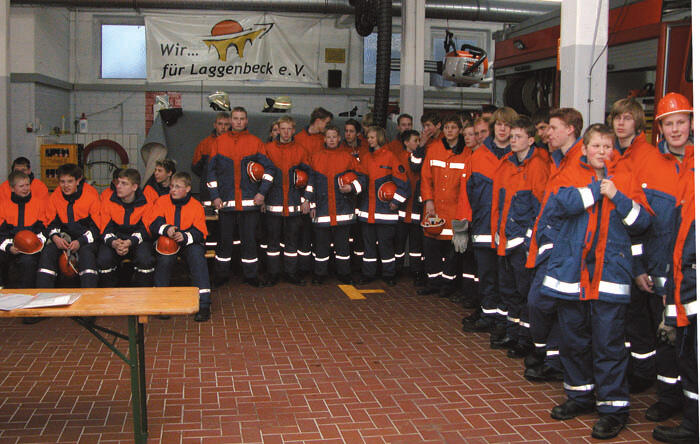 Laggenbeck. Am Samstag dem 25.03.2006 wurde zum ersten Mal offiziell die Stufe II der Jugendflamme der deutschen Jugendfeuerwehr im Kreis Steinfurt abgenommen.Dafür kamen insgesamt 78 Mädchen und Jungen aus den Jugendfeuerwehren der Städte und Gemeinden Altenberge, Greven, Hopsten, Ibbenbüren, Lienen-Kattenvenne, Lotte, Steinfurt, Tecklenburg und Westerkappeln am Samstagmittag ins Feuerwehrgerätehaus nach Laggenbeck.