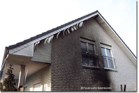 Die Bewohner waren nicht da, so dass die Feuerwehr sich zur Kontrolle des Hauses über ein "auf Kipp" stehendes Fenster im 1. Obergeschoss Zugang verschaffen musste. Das Feuer war aber zum Glück nicht ins Gebäudeinnere durchgeschlagen und auch der im Haus zurückgelassene Hund hatte keinen Schaden genommen.