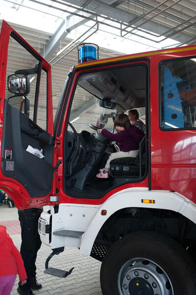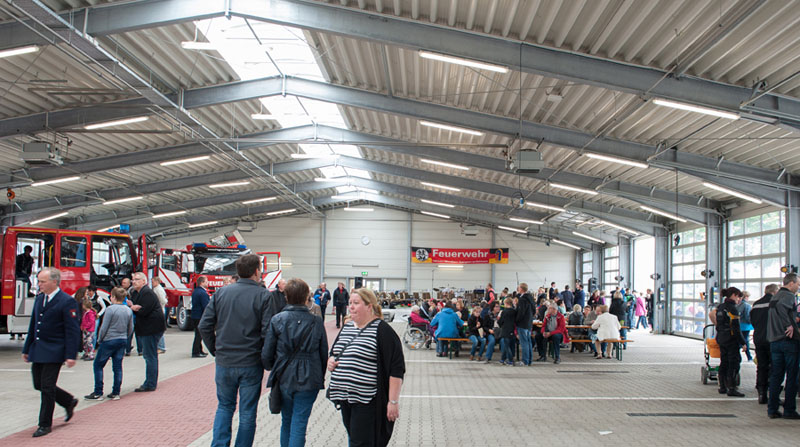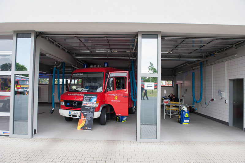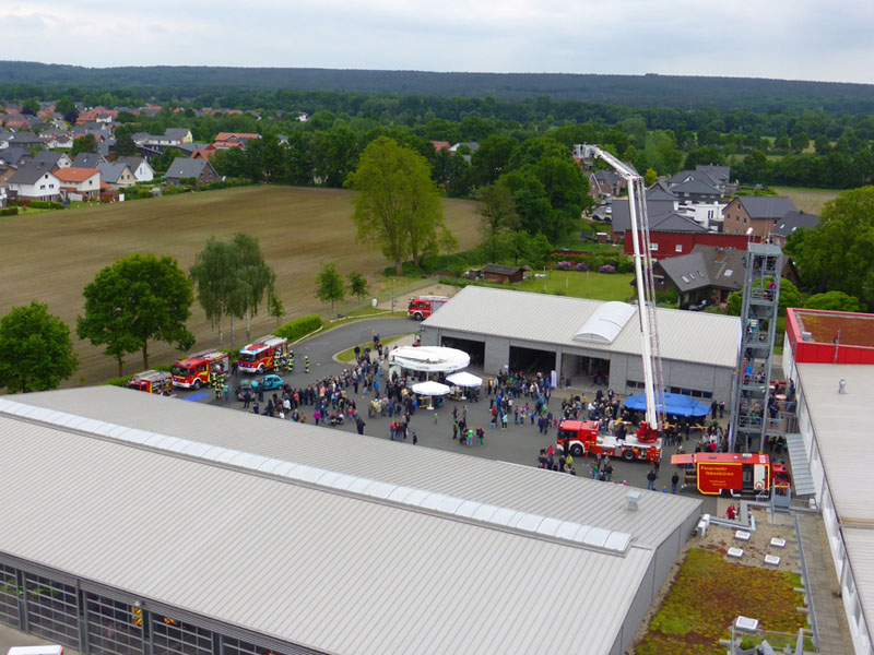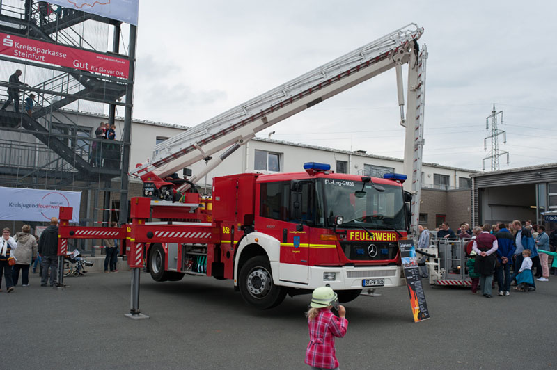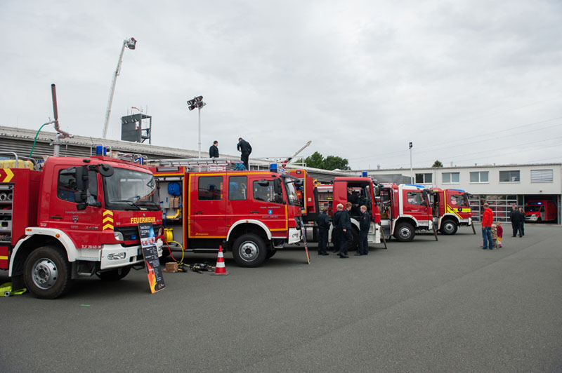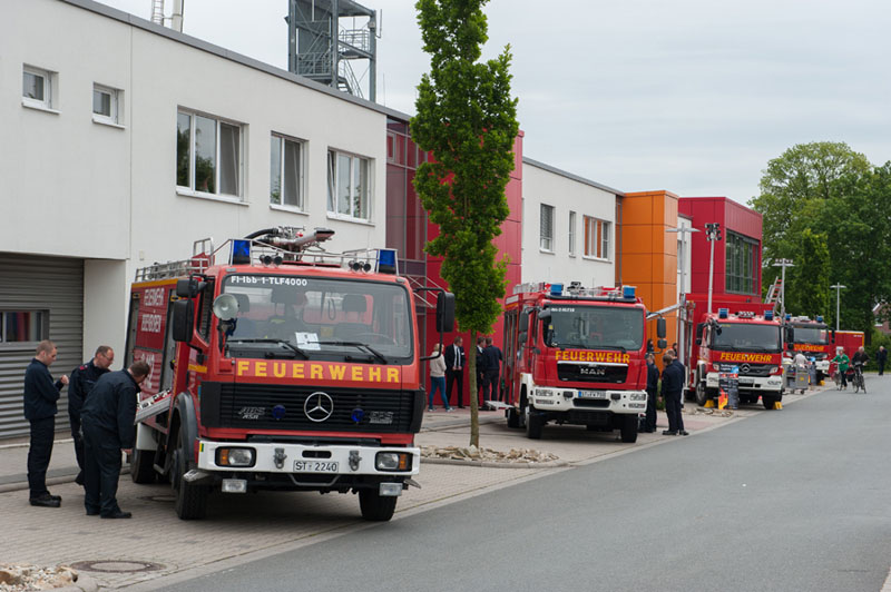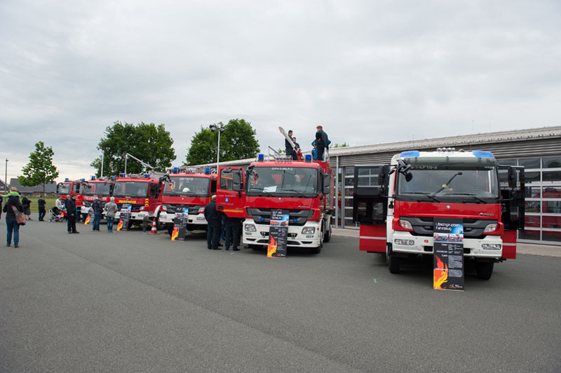 Der potentielle, junge Feuerwehrnachwuchs konnte sich dann ebenso wie die vielen erwachsenen Besucher auf dem rund 15.000 qm großen Gelände und in den Gebäuden am Niedersachsenring 90 ausgiebig informieren. Zahlreiche Feuerwehrfahrzeuge der verschiedenen Wehren aus dem Kreis Steinfurt konnten im wahrsten Sinne des Wortes begangen werden, genauso wie die Hallen und Räume der Wache, die im Jahr 2009 fertiggestellt wurde.