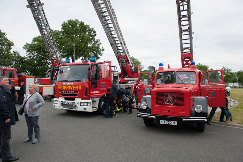 Der historische Löschzug der Feuerwehr Ibbenbüren war mit seinen gepflegten Oldtimern präsent und in der Wache konnte man sich in einer Miniaturausstellung die Ibbenbürener Gerätehäuser und Fahrzeuge alle auf einmal anschauen.