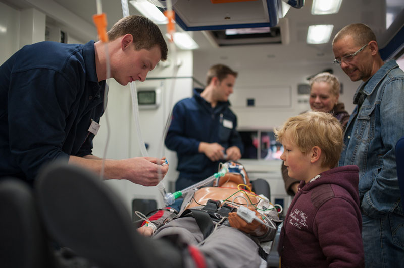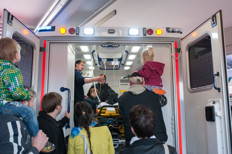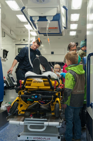 In der Halle des Rettungsdienstes gab es dabei nicht nur die Gelegenheit ein Notarzteinsatzfahrzeug und die Krankentransport- und Rettungswagen einmal gründlich unter die Lupe zu nehmen, es wurden vom medizinischen Personal auch Blutdruck- und Blutzuckermessungen angeboten.