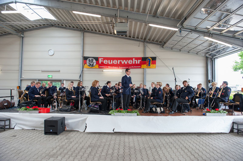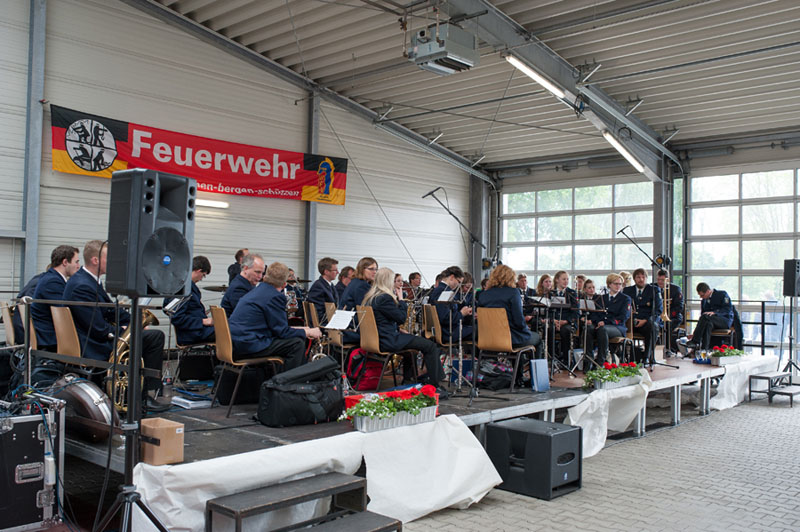 In der großen Fahrzeughalle spielte der beeindruckende Musikzug Emsdetten auf. Von traditionell bis modern – für jeden Musikgeschmack hatten die Kameradinnen und Kameraden etwas im Repertoire. Und das kam richtig gut an.