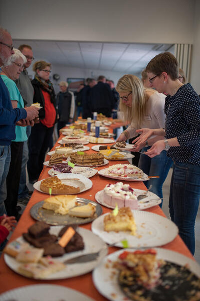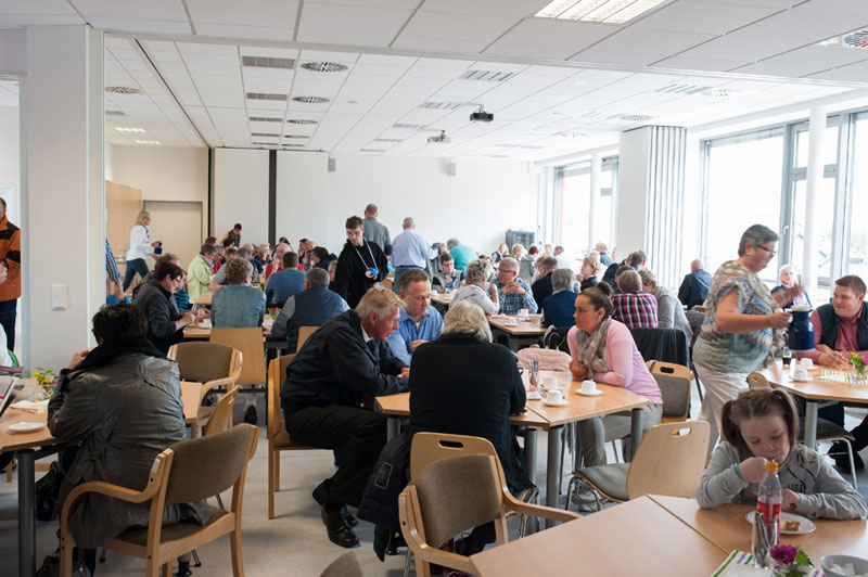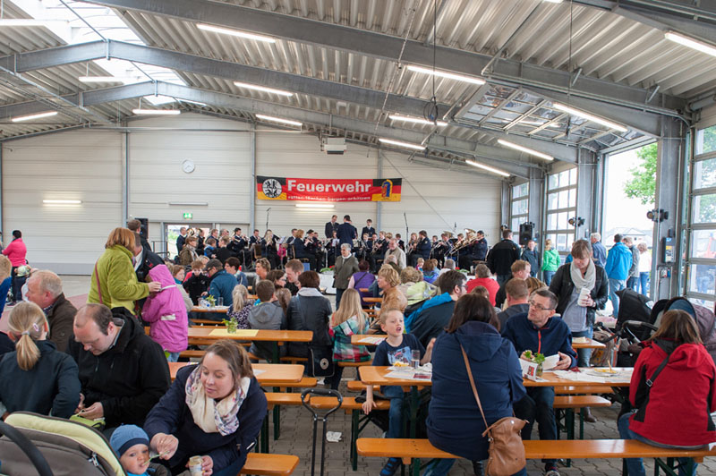Für das leibliche Wohl war mit Imbiss- und Getränkeständen sowie mit der leckeren Erbsensuppe vom Deutschen Roten Kreuz gesorgt. Wem der Sinn mehr nach Süßem stand, der ließ sich im zur feuerwehreigenen Caféteria umgebauten Versammlungsraum der Wache nieder und wurde dort von einem fleißigen Team mit Kaffee und Kuchen bewirtet.