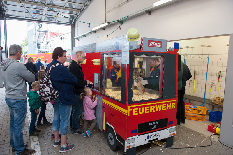 Popcorn ging übrigens "auch ganz gut". Die Jugendfeuerwehr hatte neben Wasserspielen und einem Feuerwehrquiz für die jungen Besucher auch die frische Produktion und den Verkauf des begehrten Mais-Snacks übernommen. Es kam keine Langeweile dabei auf.